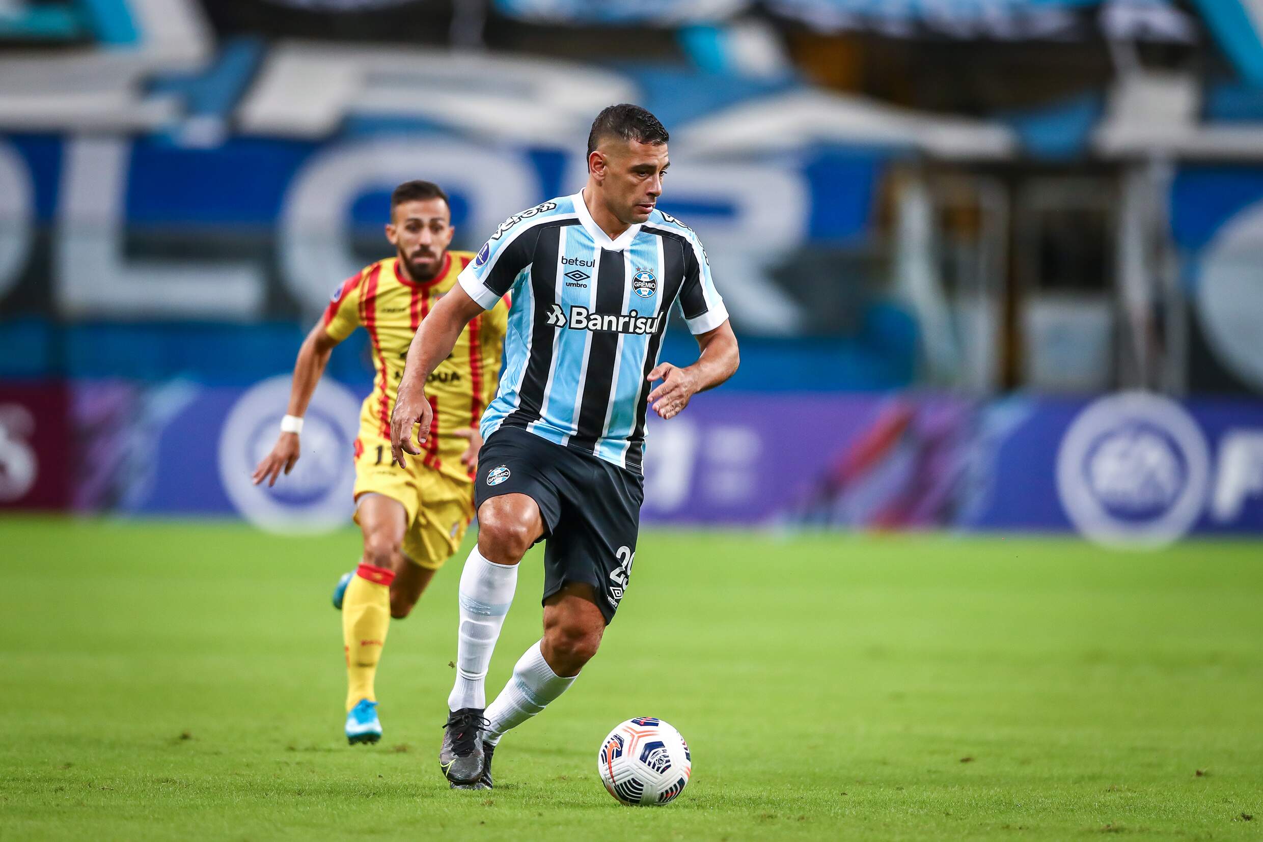 Foto: Lucas Uebel / Grêmio FBPAO Grêmio enfrenta hoje (06), às 21h30, o Aragua pela Copa Sul-Americana 2021. A partida é válida pela quinta rodada da competição e o tricolor chega com doze pontos, podendo garantir hoje sua vaga na próxima fase da competição.
