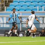 Terminou? Não. Bem que o Santos de Jair ventura queria. Tonto, e sem saber o que fazer para marcar o Grêmio que estava dando um show, sofreu o quarto gol em uma bela jogada que culminou em uma assistência de Luan para André, que fechou no segundo poste e empurrou para o marcar o quarto gol tricolor. Antes do relógio parar, Arthur que fez uma partida magnifica, chutou forte de fora da área e no cantinho de Vanderlei e fez o quinto. Foi a maior goleada da história do confronto entre Grêmio e Santos. Um pouco antes do apito fnal, Ramiro levou o terceiro cartão amarelo e fica de fora do clássico Grenal do próximo sábado.