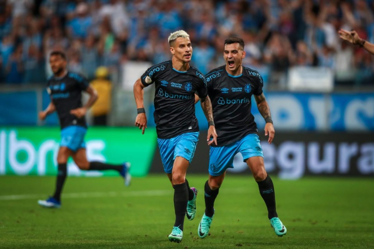 Foto: Lucas Uebel / GrêmioO Grêmio venceu o Goiás por 2 a 1 na noite desta quinta-feira (30) em partida válida 36ª rodada do Campeonato Brasileiro e garantiu a sua participação na Copa Libertadores da América do ano que vem Os visitantes abriram o marcador com Morelli, aos 27 da primeira etapa. No segundo tempo, o Tricolor gaúcho virou com Ferreirinha e Cristaldo. Com a vitória, o Grêmio é o quinto colocado, com 62 pontos. Já o Esmeraldino, amarga a 18ª posição, com apenas 35 pontos e está rebaixado para a Série B.