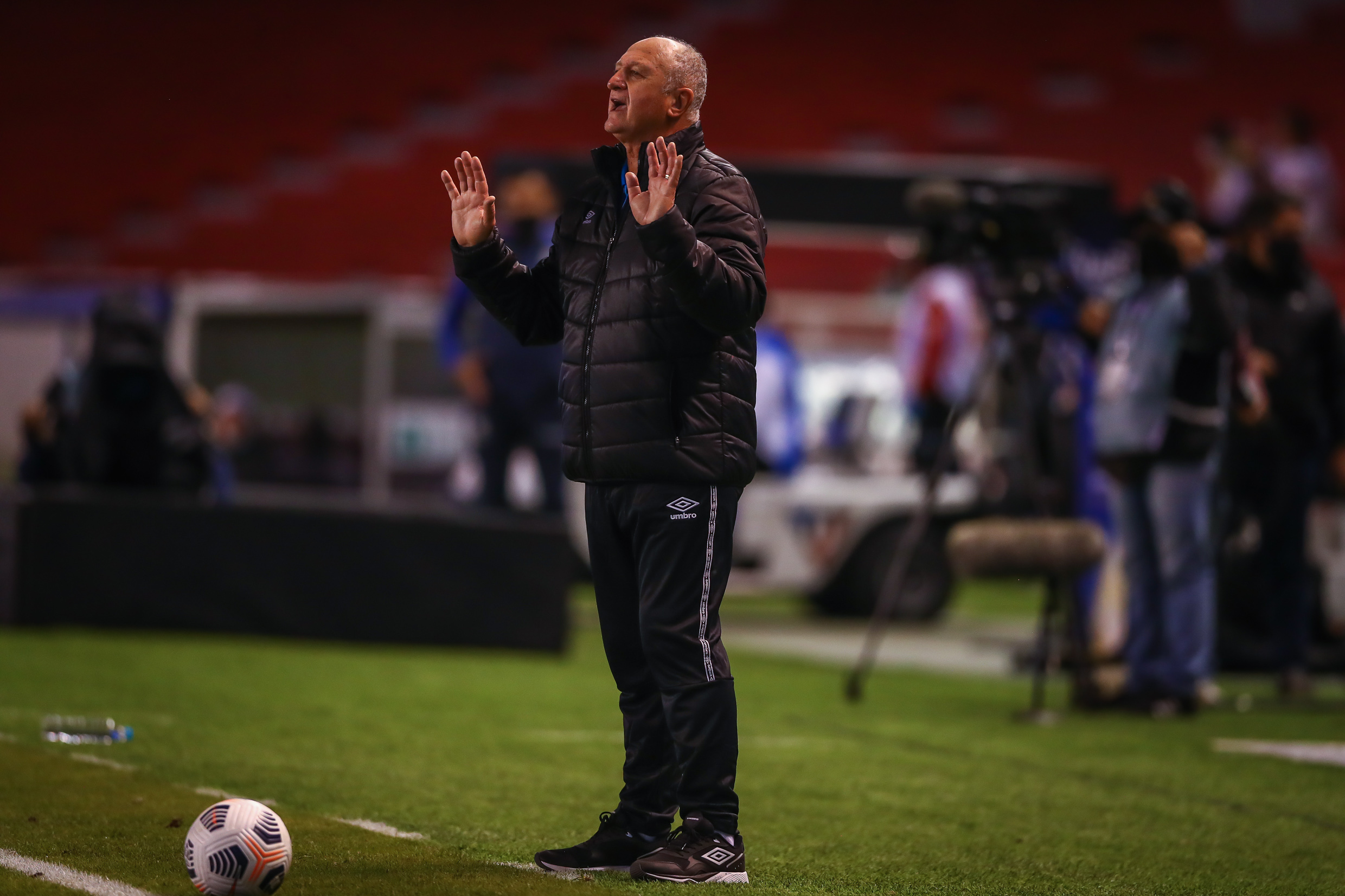 Após a vitória por 1×0 sobre a LDU pelo jogo de ida das oitavas de finais da Copa Sul-Americana, o técnico Luiz Felipe Scolari falou depois do primeiro triunfo à frente do comando gremista. Em entrevista coletiva, Felipão foi questionado sobre a questão dos goleiros do plantel e reforçou a ideia de que apenas um goleiro ideal à disposição, Gabriel Chapecó, não estaria de bom tamanho, mas revela a possibilidade de correr o risco e não ir ao mercado em busca de outro arqueiro.